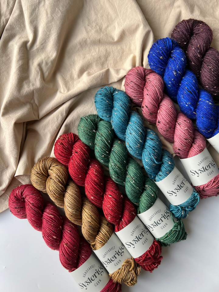 Vi farver garn med stor passion, både med tanke på farveleg, men også med det færdige strik in mente. Vi håndfarver på forskellige kvaliteter og elsker at se, hvordan farvespillet kan forandre sig fra kvalitet til kvalitet. Det håndfarvede garn og tilbehør til strik finder du her på webshoppen og i butikken. Vi håndfarver alt vores garn i Aarhus, og sender til hele verden.